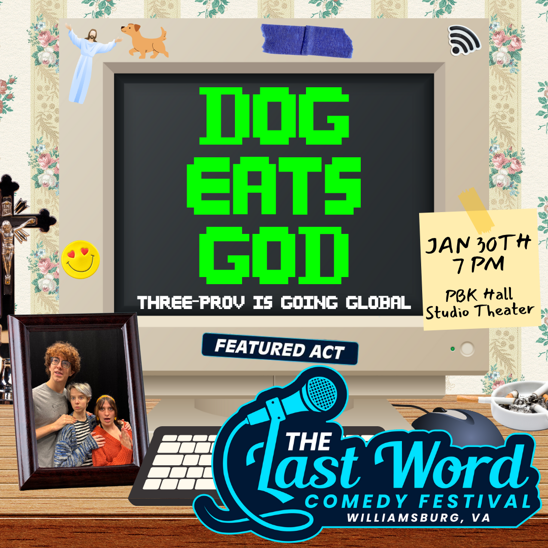 Dog Eats God is a four-person improv group that focuses heavily on character through duologues and long-form scenes. Originally put up as three-prov, the show is now led by Adam Cox, Li Angarola, Brady Barrow, and Peyton Baisden. As seen in The Last Word, Mud City and Messfest comedy festivals, this group is sure to impress and leave you howling.